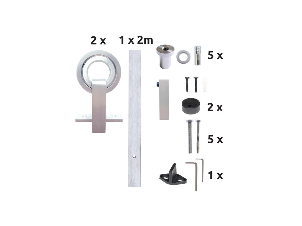 Rozmer kovania: 90x155mm, Materiál: nerez. Obsah balenia: koľajnica 200 cm - 1ks, vozík - 2ks, doraz - 2ks, spodné vedenie - 1ks, spojovací a kotviaci materiál. Dištančný valček/vzdialenosť koľajnice od steny: 35mm Nosnosť: 100kg. Rozmer kovania: 90x155mm, Materiál: nerez. Obsah balenia: koľajnica 200 cm - 1ks, vozík - 2ks, doraz - 2ks, spodné vedenie - 1ks, spojovací a kotviaci materiál. Dištančný valček/vzdialenosť koľajnice od steny: 35mm Nosnosť: 100kg.Dodatočné parametre