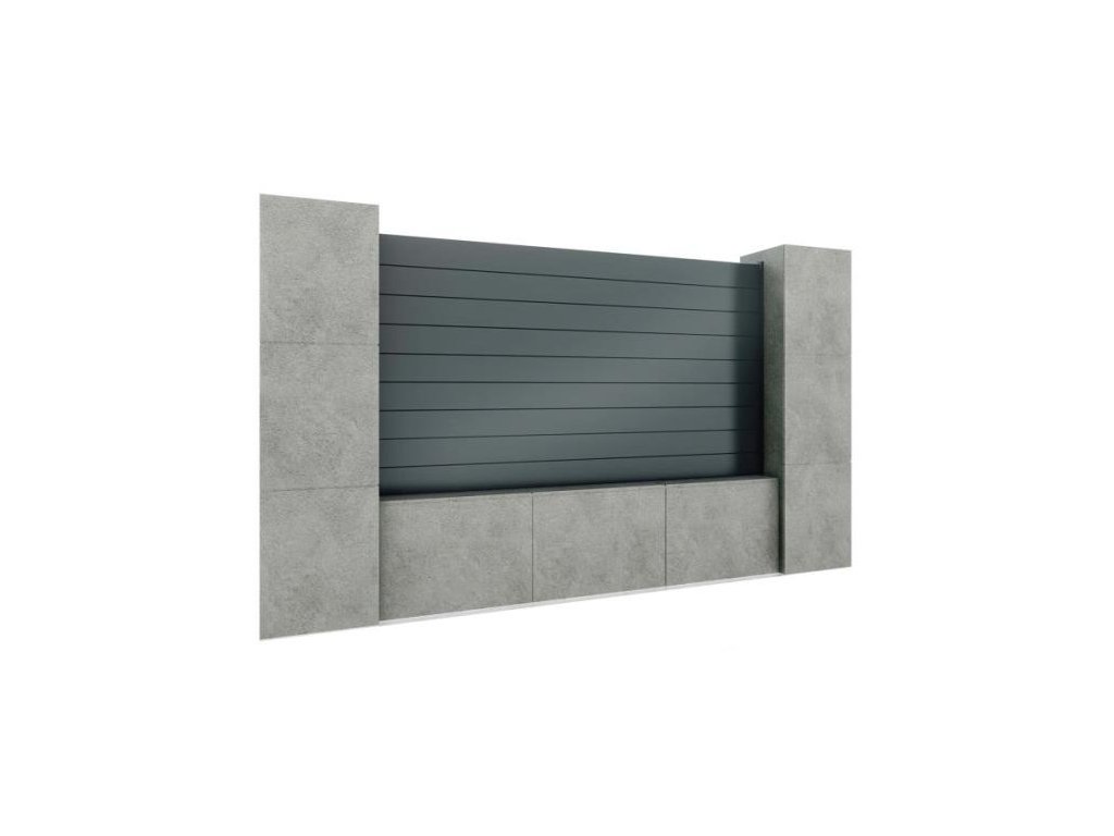 Zostava hliníkového oplotenia medzi murované alebo betónové stĺpi. Výška 1000mm a šírka 1804mm. Prevedenie lamiel vo farbe antracit. Materiál: Hliník, Povrchová úprava: EloxovanýDodatočné parametre